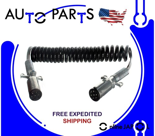 15 Ft 7 Way Coiled Cable W Spring Guard Black Electric Trailer Power Metal End Ebay